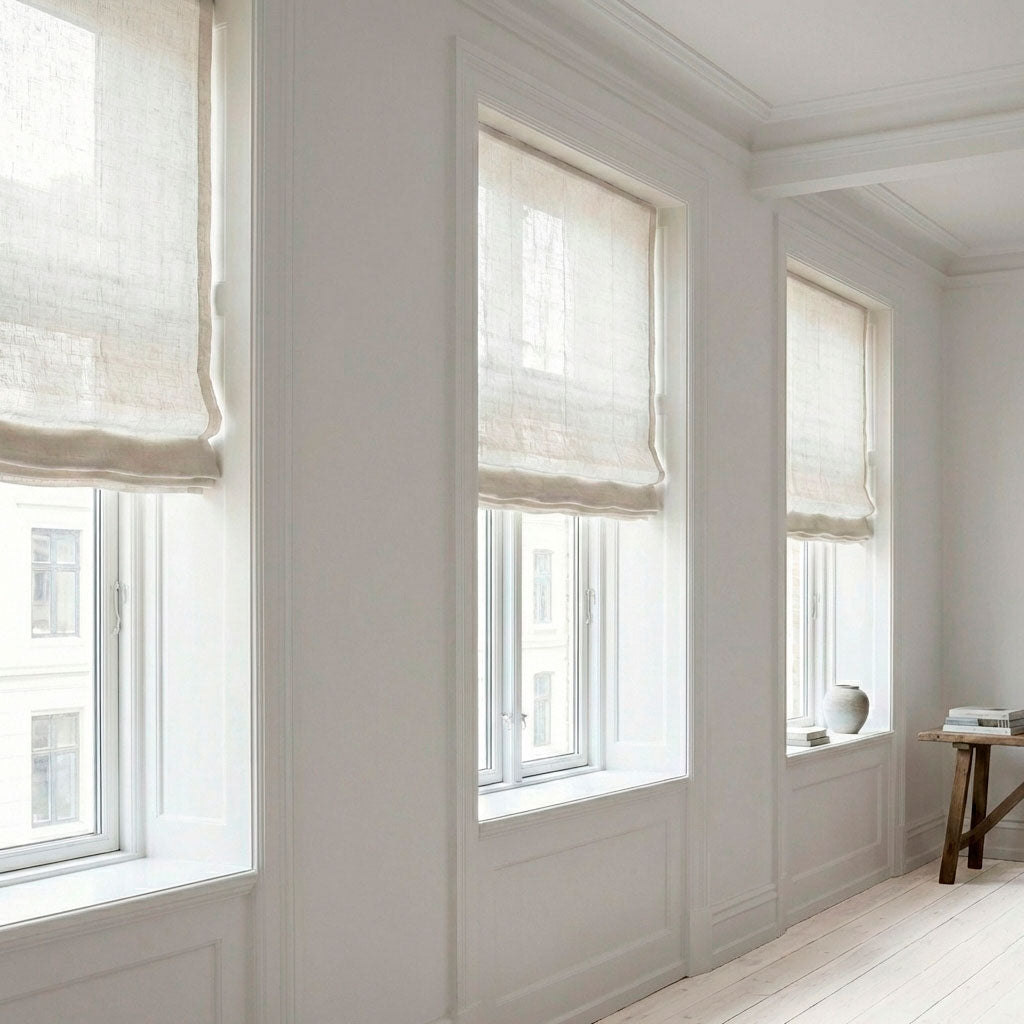 Vi syr dine foldegardiner efter mål, leverer gratis og giver dig 15% rabat på alle vores hørfoldegardiner frem til 15. februar.