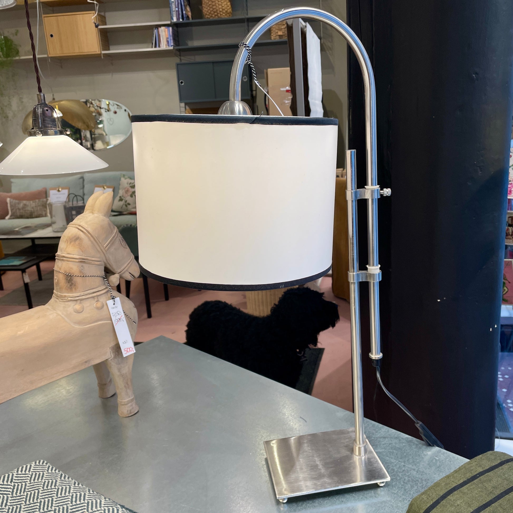 Metallampe med lys skærm