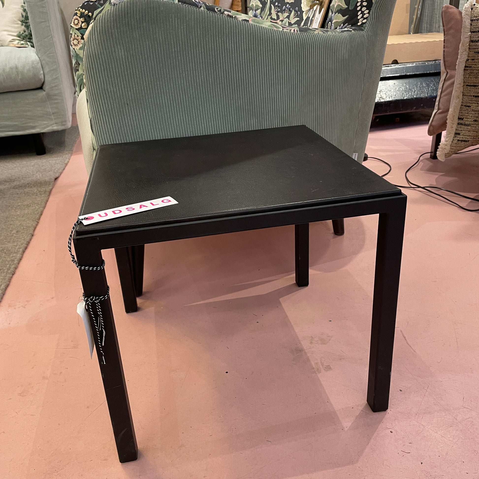 Smart sidebord med bordplade i sort læder.
